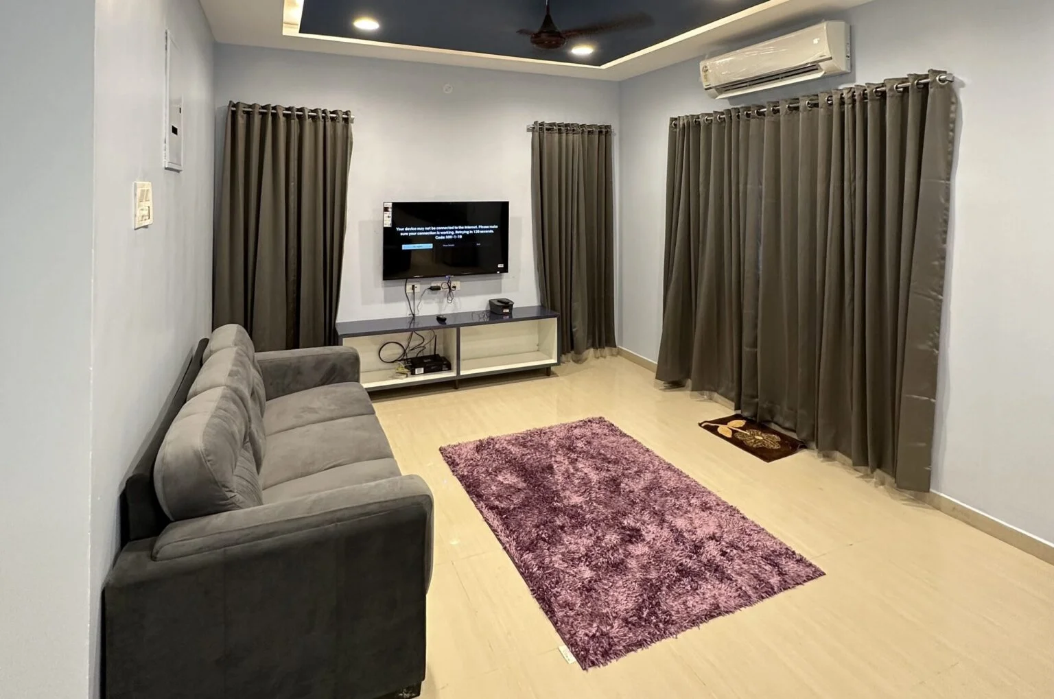 Experience unparalleled comfort at EcrVillas in our luxurious 3BHK individual villa, where modern amenities meet serene privacy. Indulge in entertainment with a wide selection of OTT platforms, stay cool with air conditioning in both the living room and bedrooms, and enjoy hot showers with water heaters in each lavatory.