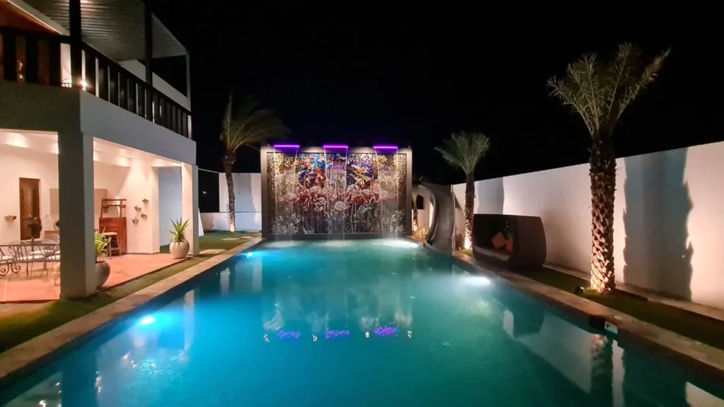 - A Covered Private Swimming Pool Access With Waterfalls.