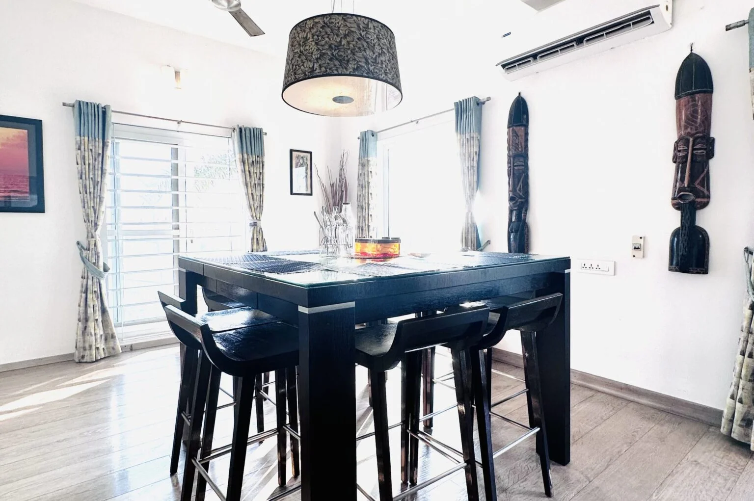 Experience unparalleled comfort at EcrVillas in our luxurious 4BHK individual villa, where modern amenities meet serene privacy. Indulge in entertainment with a wide selection of OTT platforms, stay cool with air conditioning in both the living room and bedrooms, and enjoy hot showers with water heaters in each lavatory.