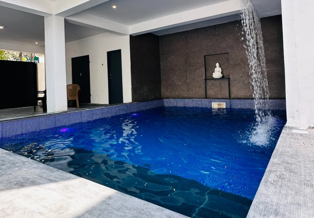 - A Covered Private Swimming Pool Access With Waterfalls.